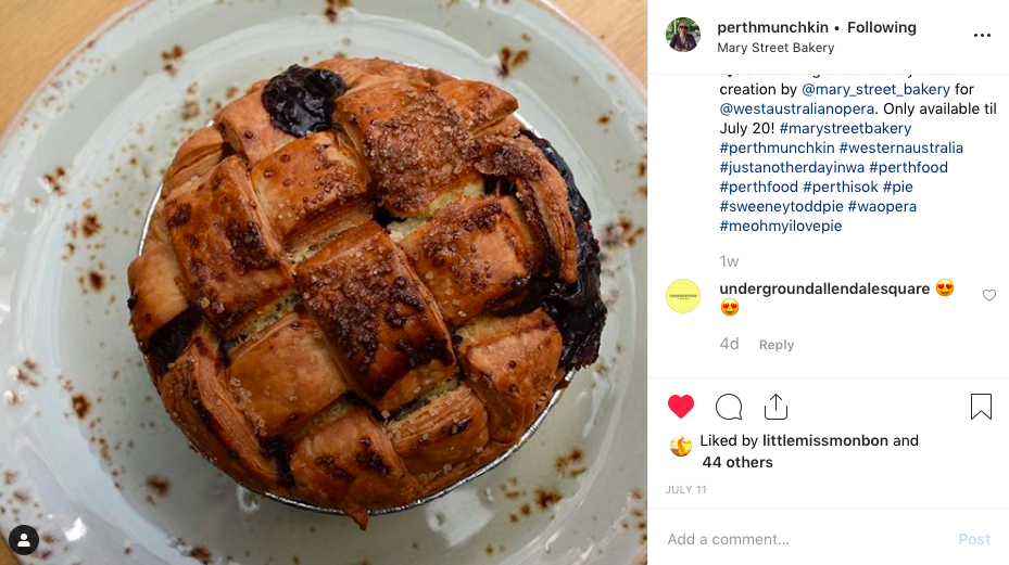Description: West Australian Opera collaborated with several major West Australian brands to cross-promote Sweeney Todd: The Demon Babrer of Fleet Street. The collaborations included a limited edition Sweeney Todd pie at popular Perth eatery Mary Street Bakery and promotional opportunities with Uncle Joe’s Barber Shop.